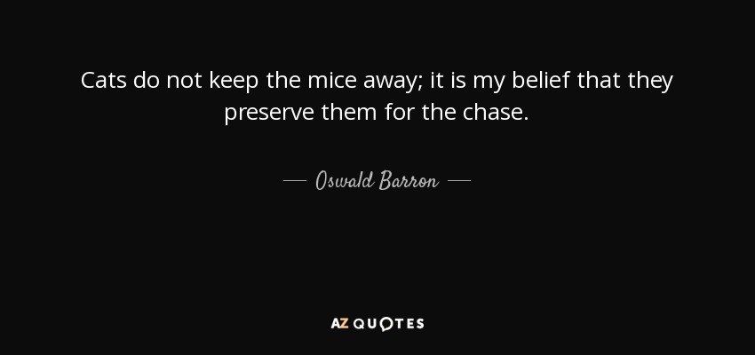 Cats do not keep the mice away; it is my belief that they preserve them for the chase.