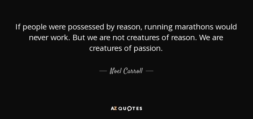 If people were possessed by reason, running marathons would never work. But we are not creatures of reason. We are creatures of passion.