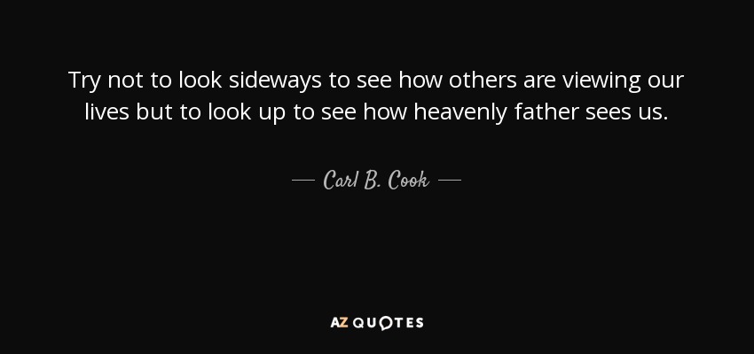 Try not to look sideways to see how others are viewing our lives but to look up to see how heavenly father sees us.