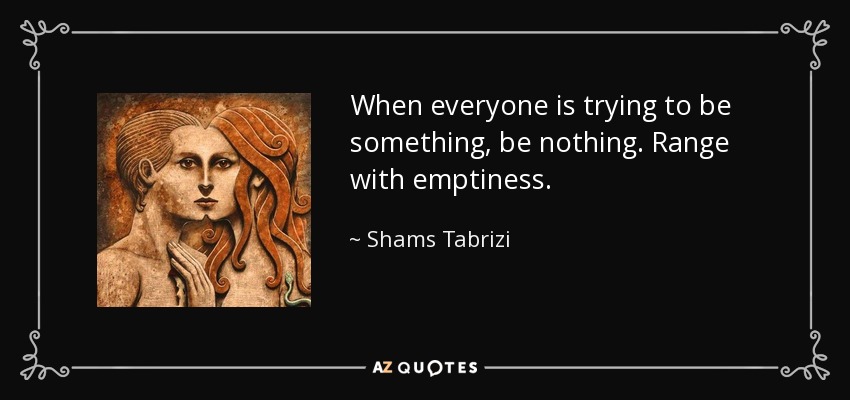 When everyone is trying to be something, be nothing. Range with emptiness.