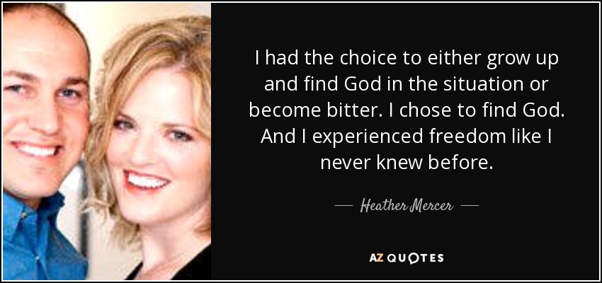 I had the choice to either grow up and find God in the situation or become bitter. I chose to find God. And I experienced freedom like I never knew before.