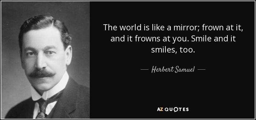 The world is like a mirror; frown at it, and it frowns at you. Smile and it smiles, too.