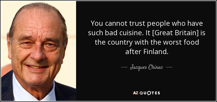 You cannot trust people who have such bad cuisine. It [Great Britain] is the country with the worst food after Finland.