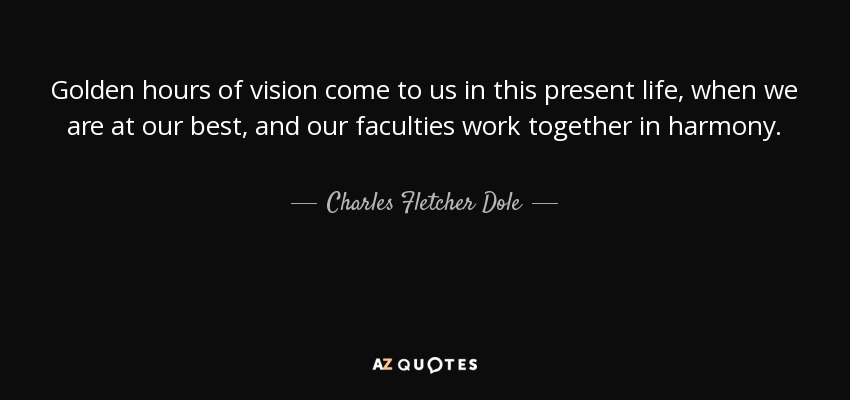 Golden hours of vision come to us in this present life, when we are at our best, and our faculties work together in harmony.