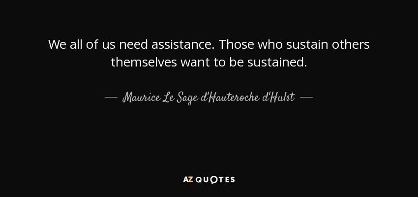 We all of us need assistance. Those who sustain others themselves want to be sustained.