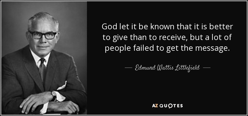 God let it be known that it is better to give than to receive, but a lot of people failed to get the message.