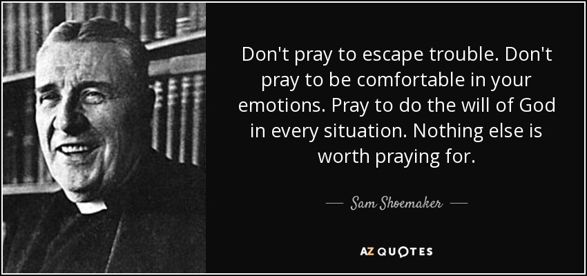Don't pray to escape trouble. Don't pray to be comfortable in your emotions. Pray to do the will of God in every situation. Nothing else is worth praying for.