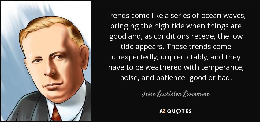 Trends come like a series of ocean waves, bringing the high tide when things are good and, as conditions recede, the low tide appears. These trends come unexpectedly, unpredictably, and they have to be weathered with temperance, poise, and patience- good or bad.