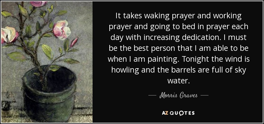 It takes waking prayer and working prayer and going to bed in prayer each day with increasing dedication. I must be the best person that I am able to be when I am painting. Tonight the wind is howling and the barrels are full of sky water.