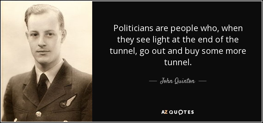 Politicians are people who, when they see light at the end of the tunnel, go out and buy some more tunnel.