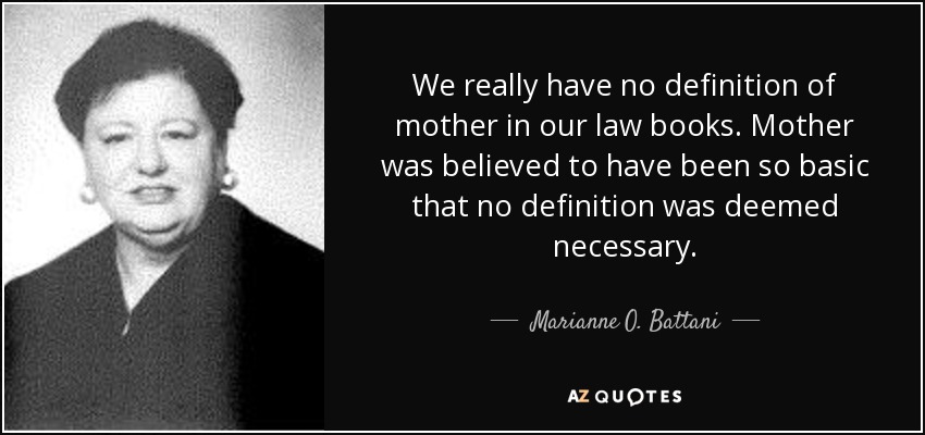 We really have no definition of mother in our law books. Mother was believed to have been so basic that no definition was deemed necessary.