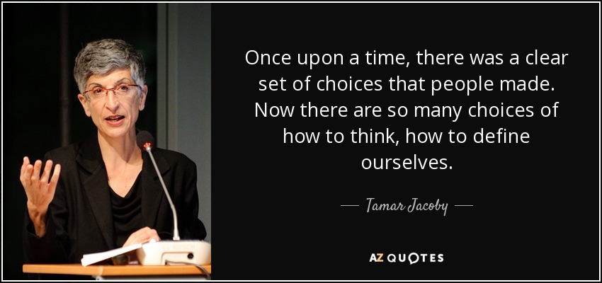 Once upon a time, there was a clear set of choices that people made. Now there are so many choices of how to think, how to define ourselves.