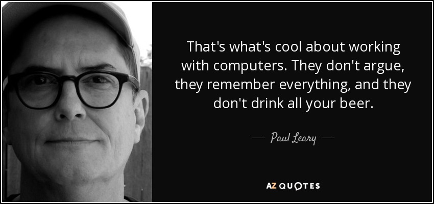 That's what's cool about working with computers. They don't argue, they remember everything, and they don't drink all your beer.
