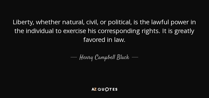 Liberty, whether natural, civil, or political, is the lawful power in the individual to exercise his corresponding rights. It is greatly favored in law.