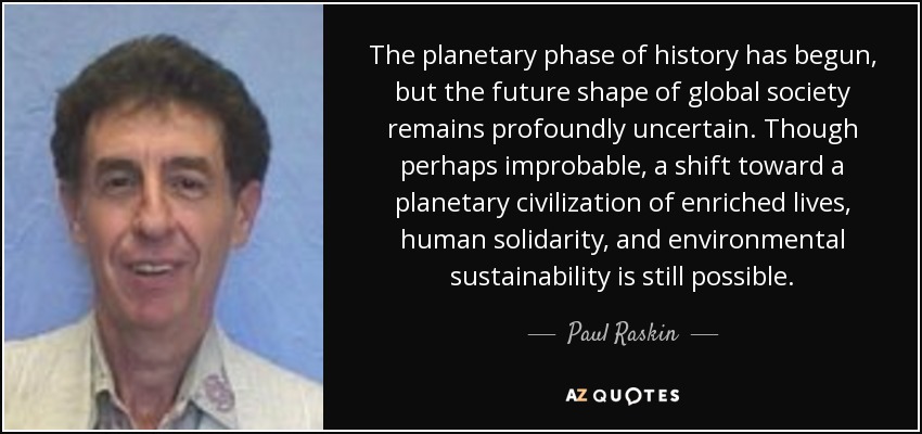 The planetary phase of history has begun, but the future shape of global society remains profoundly uncertain. Though perhaps improbable, a shift toward a planetary civilization of enriched lives, human solidarity, and environmental sustainability is still possible.