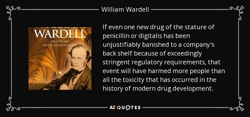 If even one new drug of the stature of penicillin or digitalis has been unjustifiably banished to a company's back shelf because of exceedingly stringent regulatory requirements, that event will have harmed more people than all the toxicity that has occurred in the history of modern drug development.