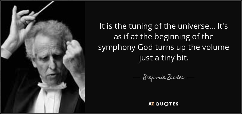 It is the tuning of the universe... It's as if at the beginning of the symphony God turns up the volume just a tiny bit.
