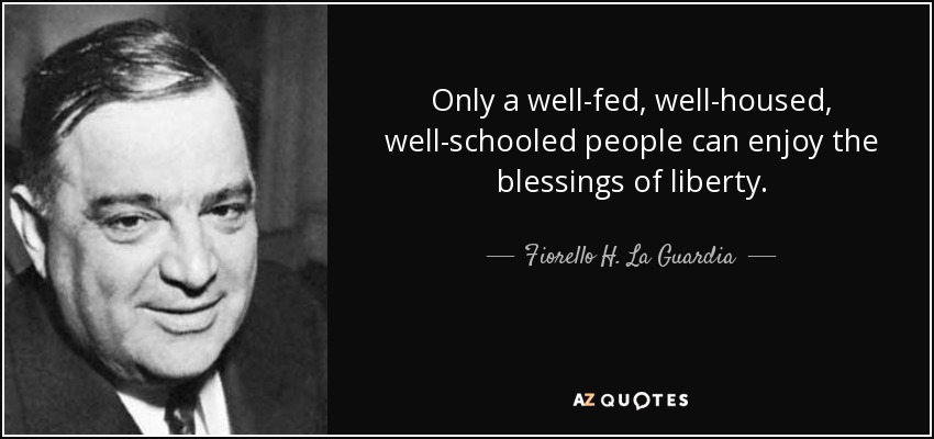 Only a well-fed, well-housed, well-schooled people can enjoy the blessings of liberty.