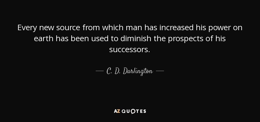 Every new source from which man has increased his power on earth has been used to diminish the prospects of his successors.