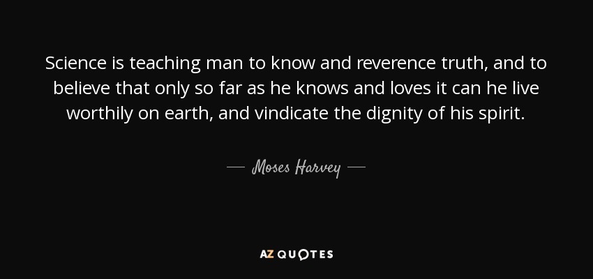 Science is teaching man to know and reverence truth, and to believe that only so far as he knows and loves it can he live worthily on earth, and vindicate the dignity of his spirit.