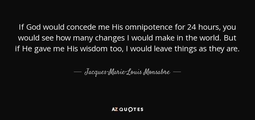 If God would concede me His omnipotence for 24 hours, you would see how many changes I would make in the world. But if He gave me His wisdom too, I would leave things as they are.