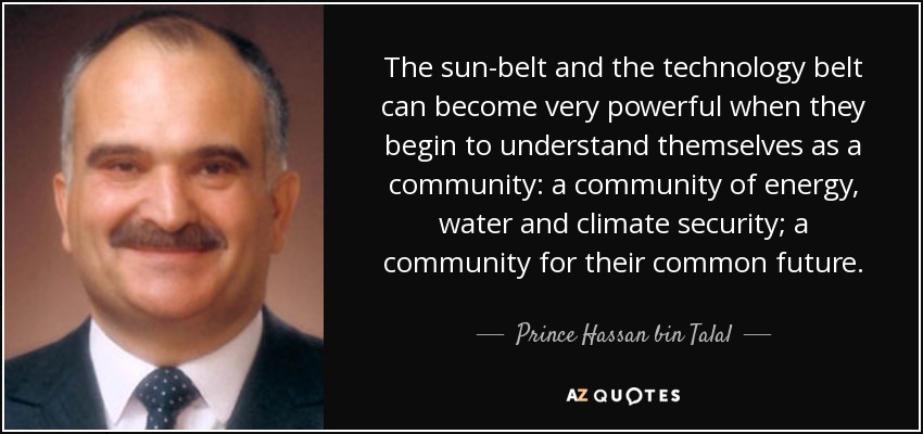 The sun-belt and the technology belt can become very powerful when they begin to understand themselves as a community: a community of energy, water and climate security; a community for their common future.