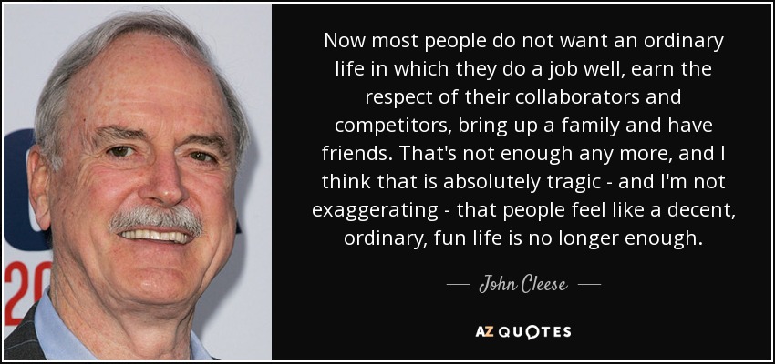 Now most people do not want an ordinary life in which they do a job well, earn the respect of their collaborators and competitors, bring up a family and have friends. That's not enough any more, and I think that is absolutely tragic - and I'm not exaggerating - that people feel like a decent, ordinary, fun life is no longer enough.