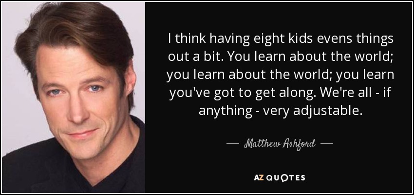 I think having eight kids evens things out a bit. You learn about the world; you learn about the world; you learn you've got to get along. We're all - if anything - very adjustable.