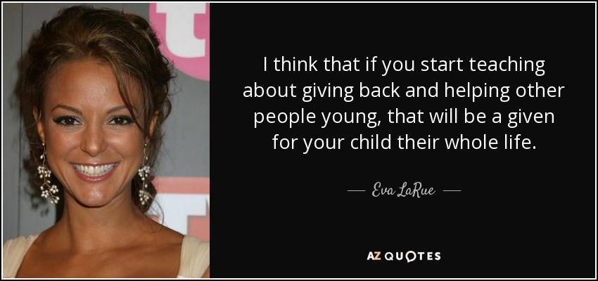 I think that if you start teaching about giving back and helping other people young, that will be a given for your child their whole life.