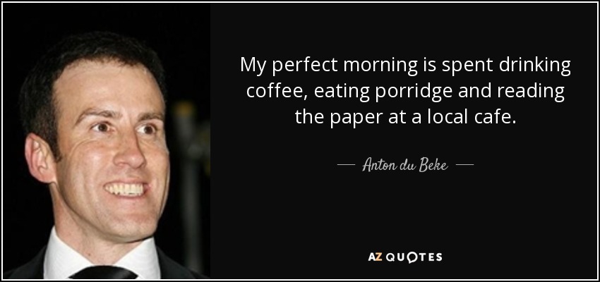 My perfect morning is spent drinking coffee, eating porridge and reading the paper at a local cafe.