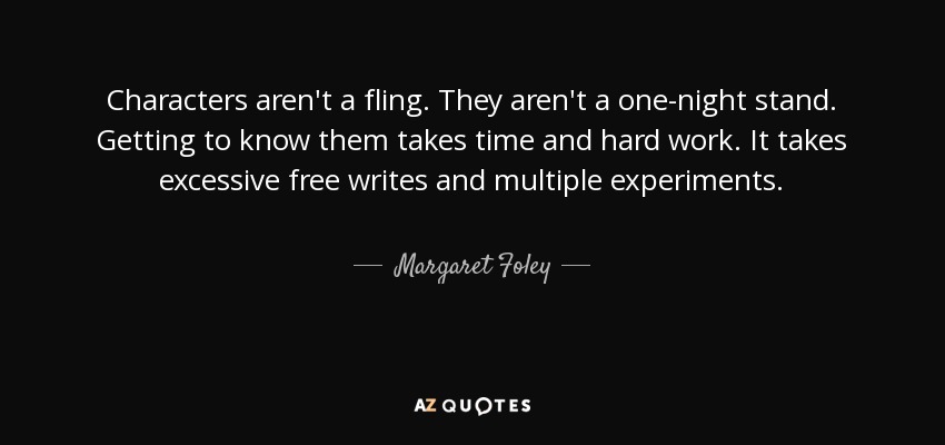 Characters aren't a fling. They aren't a one-night stand. Getting to know them takes time and hard work. It takes excessive free writes and multiple experiments.