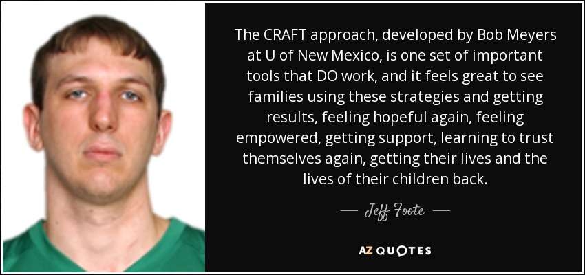 The CRAFT approach, developed by Bob Meyers at U of New Mexico, is one set of important tools that DO work, and it feels great to see families using these strategies and getting results, feeling hopeful again, feeling empowered, getting support, learning to trust themselves again, getting their lives and the lives of their children back.