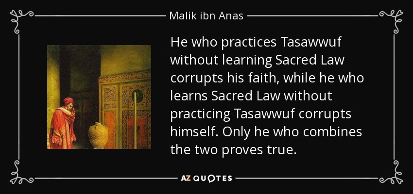 He who practices Tasawwuf without learning Sacred Law corrupts his faith, while he who learns Sacred Law without practicing Tasawwuf corrupts himself. Only he who combines the two proves true.