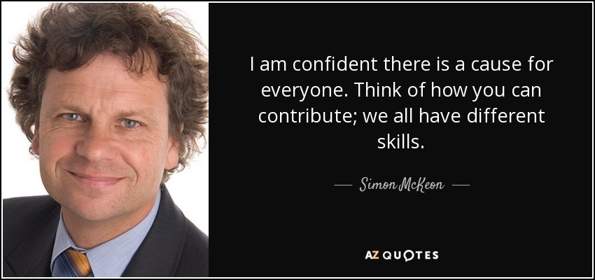 I am confident there is a cause for everyone. Think of how you can contribute; we all have different skills.