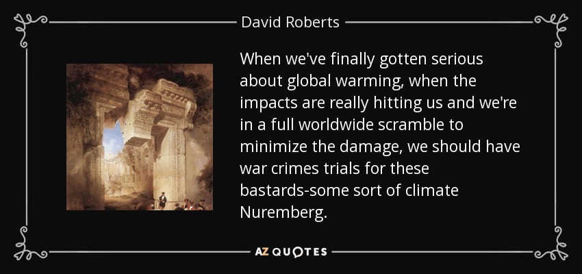 When we've finally gotten serious about global warming, when the impacts are really hitting us and we're in a full worldwide scramble to minimize the damage, we should have war crimes trials for these bastards-some sort of climate Nuremberg.
