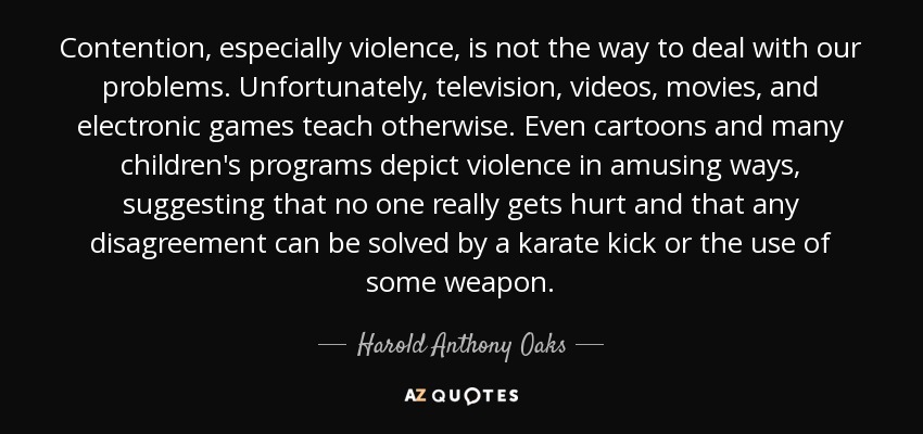 Contention, especially violence, is not the way to deal with our problems. Unfortunately, television, videos, movies, and electronic games teach otherwise. Even cartoons and many children's programs depict violence in amusing ways, suggesting that no one really gets hurt and that any disagreement can be solved by a karate kick or the use of some weapon.