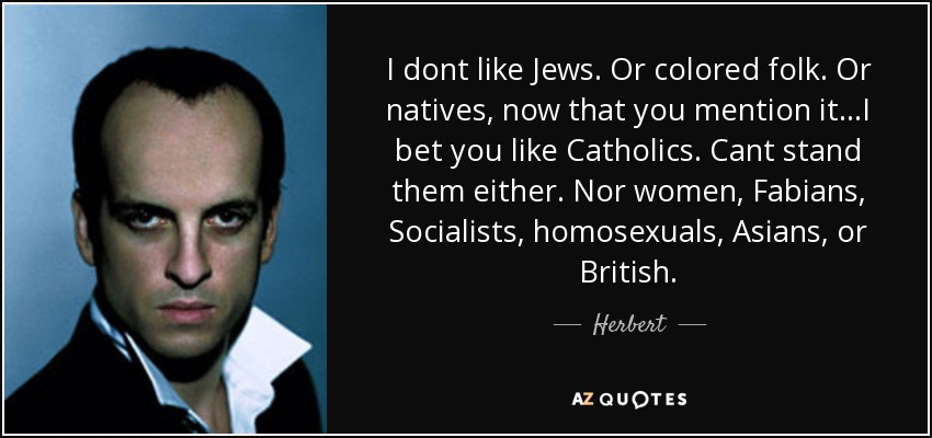 I dont like Jews. Or colored folk. Or natives, now that you mention it...I bet you like Catholics. Cant stand them either. Nor women, Fabians, Socialists, homosexuals, Asians, or British.