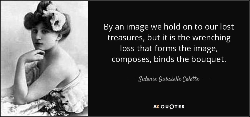 By an image we hold on to our lost treasures, but it is the wrenching loss that forms the image, composes, binds the bouquet.