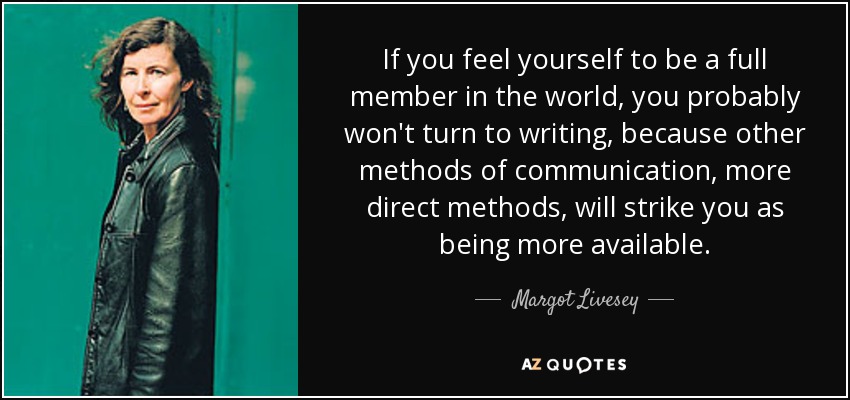 If you feel yourself to be a full member in the world, you probably won't turn to writing, because other methods of communication, more direct methods, will strike you as being more available.