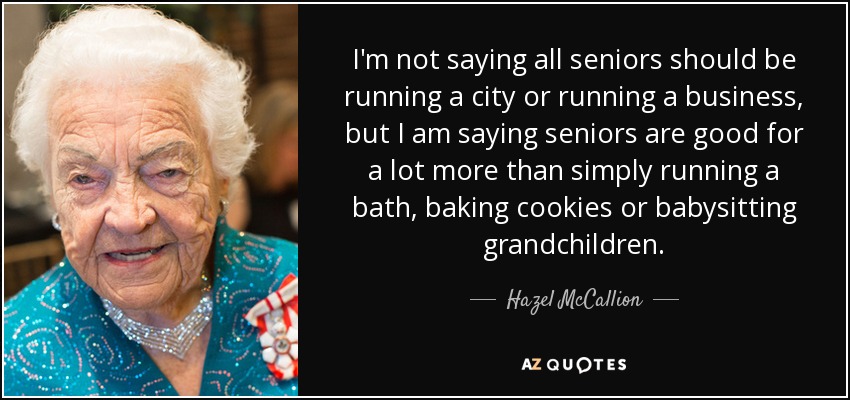 I'm not saying all seniors should be running a city or running a business, but I am saying seniors are good for a lot more than simply running a bath, baking cookies or babysitting grandchildren.