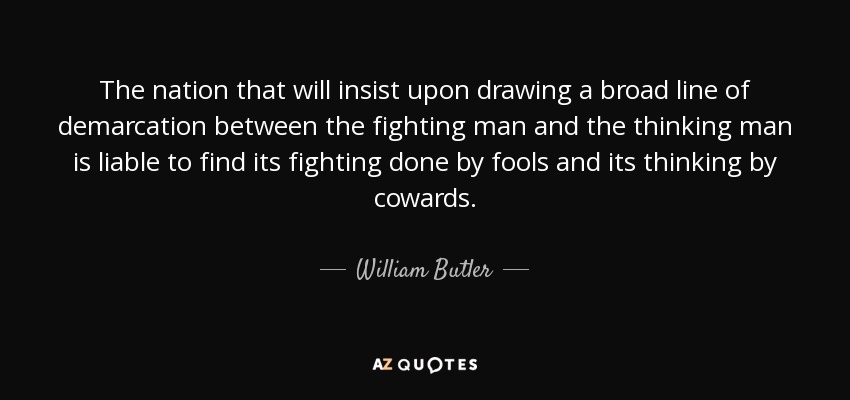 The nation that will insist upon drawing a broad line of demarcation between the fighting man and the thinking man is liable to find its fighting done by fools and its thinking by cowards.