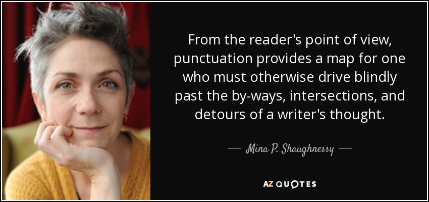 From the reader's point of view, punctuation provides a map for one who must otherwise drive blindly past the by-ways, intersections, and detours of a writer's thought.