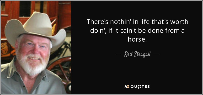 There's nothin' in life that's worth doin', if it cain't be done from a horse.