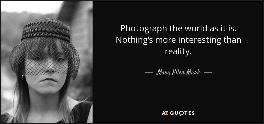 I think you reveal yourself by what you choose to photograph, but I prefer photographs that tell more about the subject. There's nothing much interesting to tell about me; what's interesting is the person I'm photographing, and that's what I try to show. [...] I think each photographer has a point of view and a way of looking at the world... that has to do with your subject matter and how you choose to present it. What's interesting is letting people tell you about themselves in the picture.