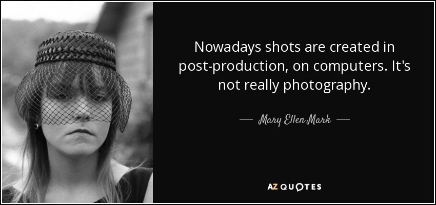 Nowadays shots are created in post-production, on computers. It's not really photography.