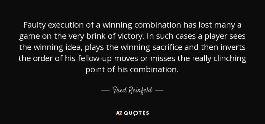 Faulty execution of a winning combination has lost many a game on the very brink of victory. In such cases a player sees the winning idea, plays the winning sacrifice and then inverts the order of his fellow-up moves or misses the really clinching point of his combination.