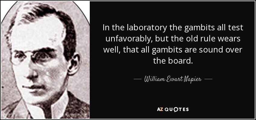 In the laboratory the gambits all test unfavorably, but the old rule wears well, that all gambits are sound over the board.