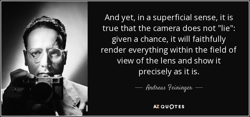 And yet, in a superficial sense, it is true that the camera does not "lie": given a chance, it will faithfully render everything within the field of view of the lens and show it precisely as it is.