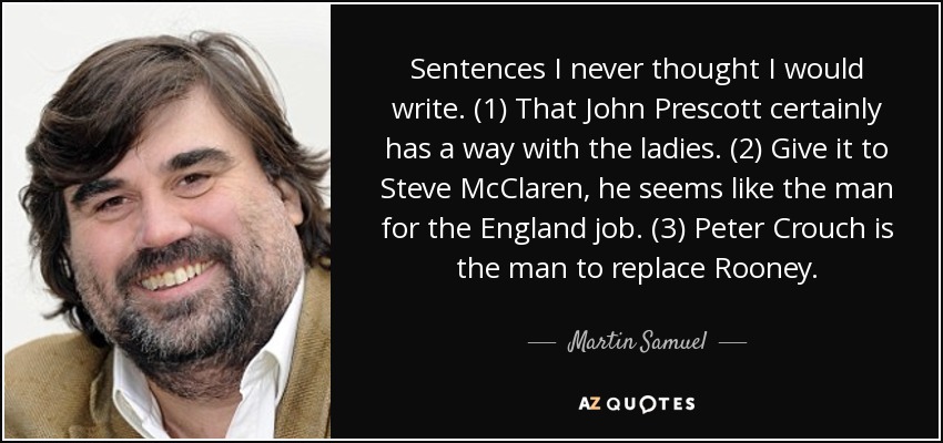 Sentences I never thought I would write. (1) That John Prescott certainly has a way with the ladies. (2) Give it to Steve McClaren, he seems like the man for the England job. (3) Peter Crouch is the man to replace Rooney.