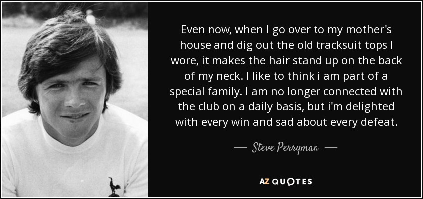 Even now, when I go over to my mother's house and dig out the old tracksuit tops I wore, it makes the hair stand up on the back of my neck. I like to think i am part of a special family. I am no longer connected with the club on a daily basis, but i'm delighted with every win and sad about every defeat.